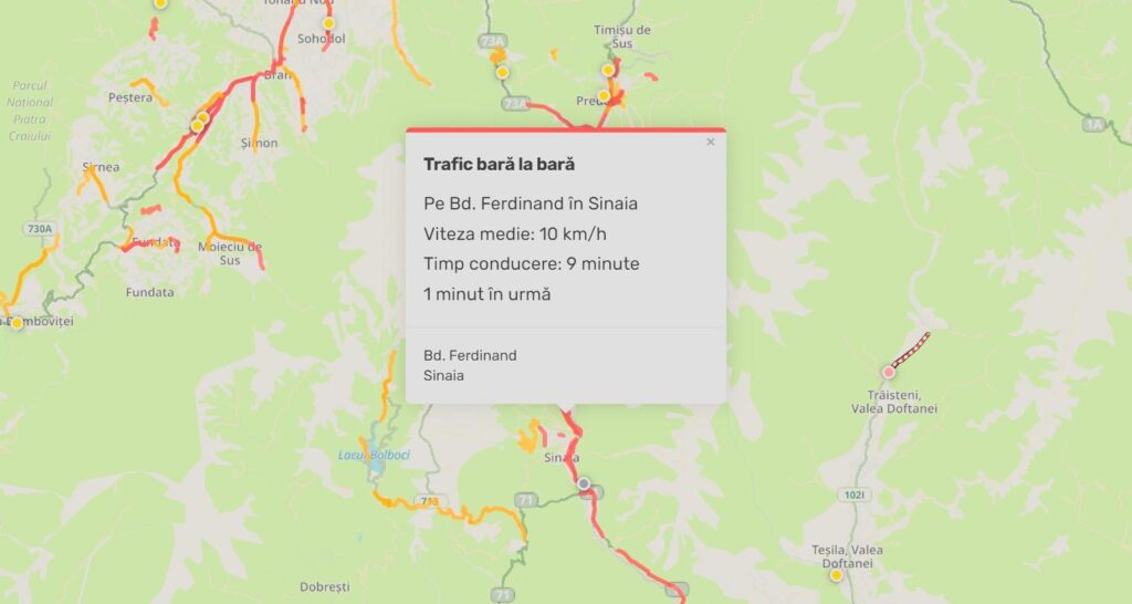 „În prezent, traficul auto este îngreunat pe DN1, începând cu localitatea Predeal, din cauza volumului ridicat de mașini aflate în circulație.”