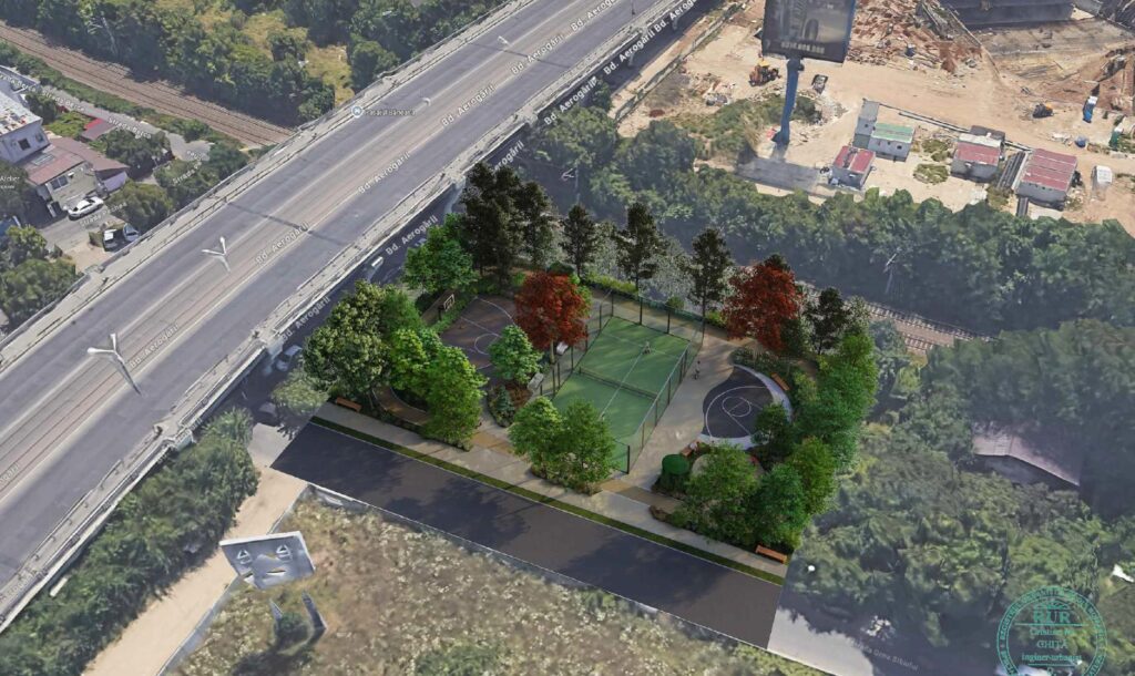 Direcția de Utilități Publice, Salubrizare și Protecția Mediului din Sectorul 1 a inițiat o licitație publică simplificată pentru realizarea unor lucrări de amenajare a patru terenuri de sport pe un teren viran situat lângă Bulevardul Aerogării. Proiectul prevede construcția a două terenuri de baschet, un teren de padel și unul de teqball pe strada Ocna Sibiului (fost nr. 9–21).